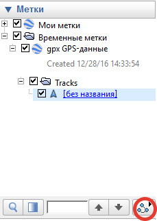 - в левом окне программы «Метки» (рис. 9) раскрыть списки «Временные метки» затем GPS данные затем Tracks. Щелкните правой кнопкой мыши с названием метки и в контекстном меню выберите пункт меню «Свойства»;