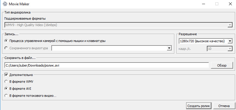 - в появившемся окне настроек формата видео выставить параметры как на изображении (рис. 11) и нажать на кнопку «Создать ролик».