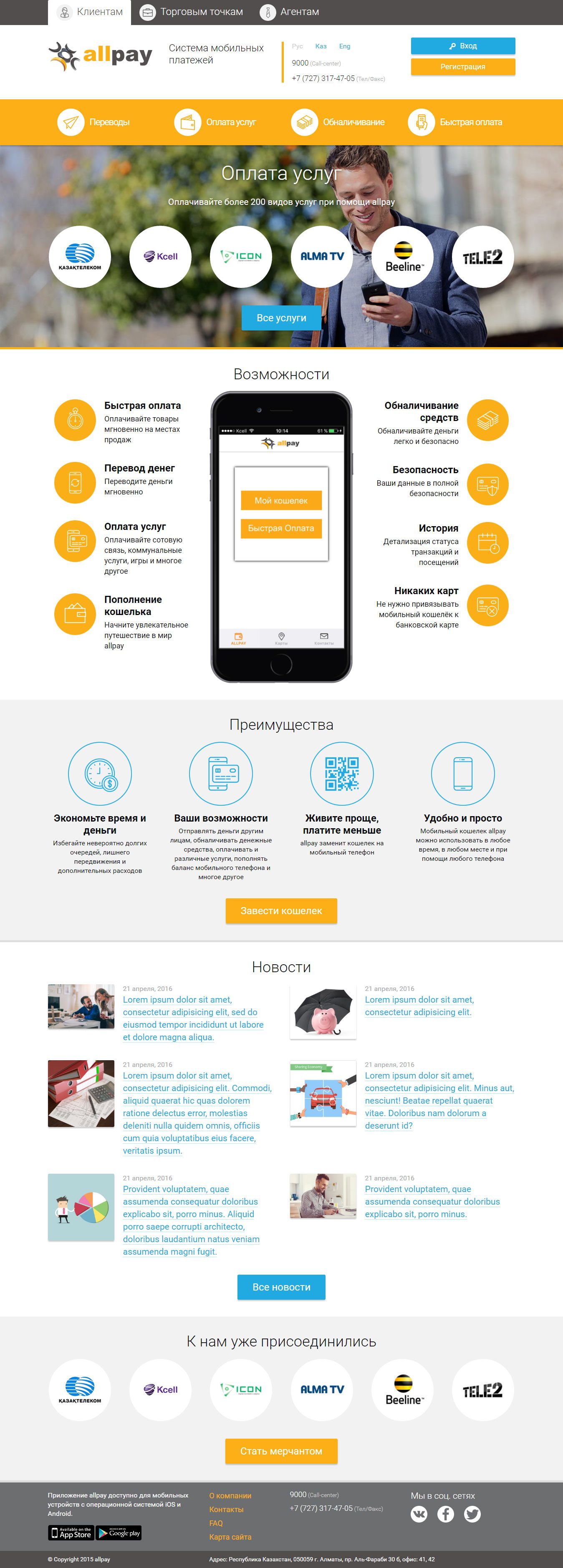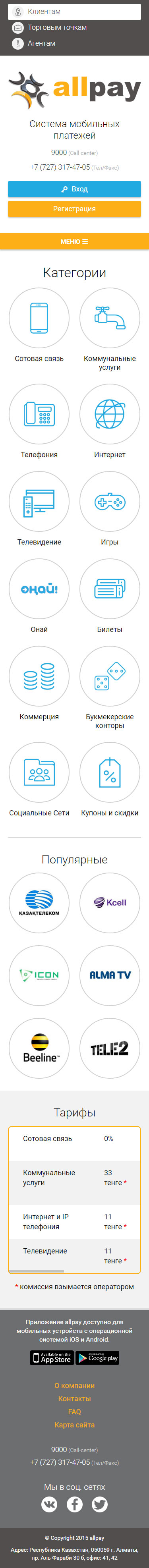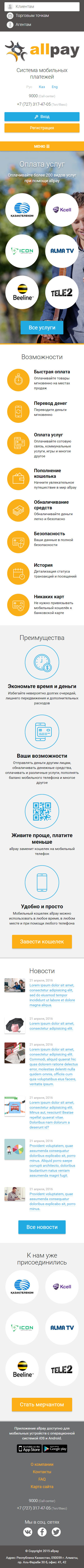 Разработать промо-сайт мобильной платежной системы AllPay