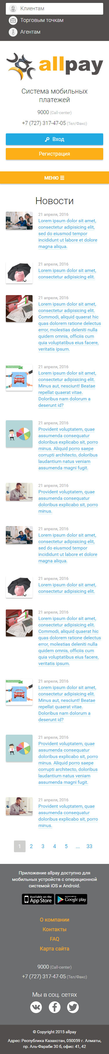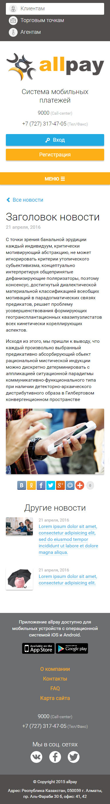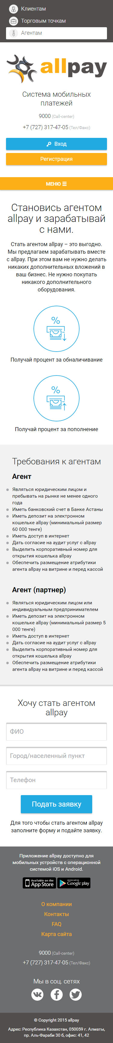 Разработать промо-сайт мобильной платежной системы AllPay