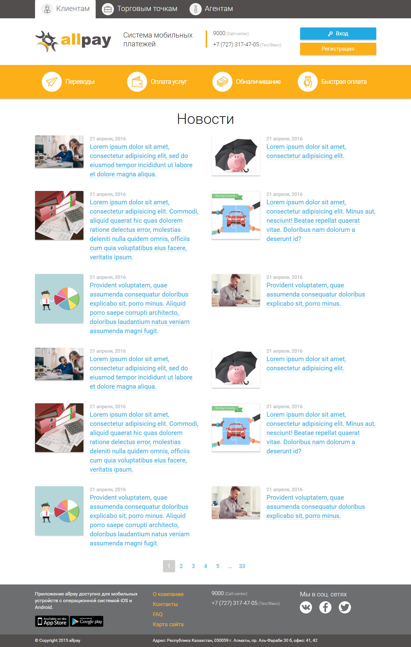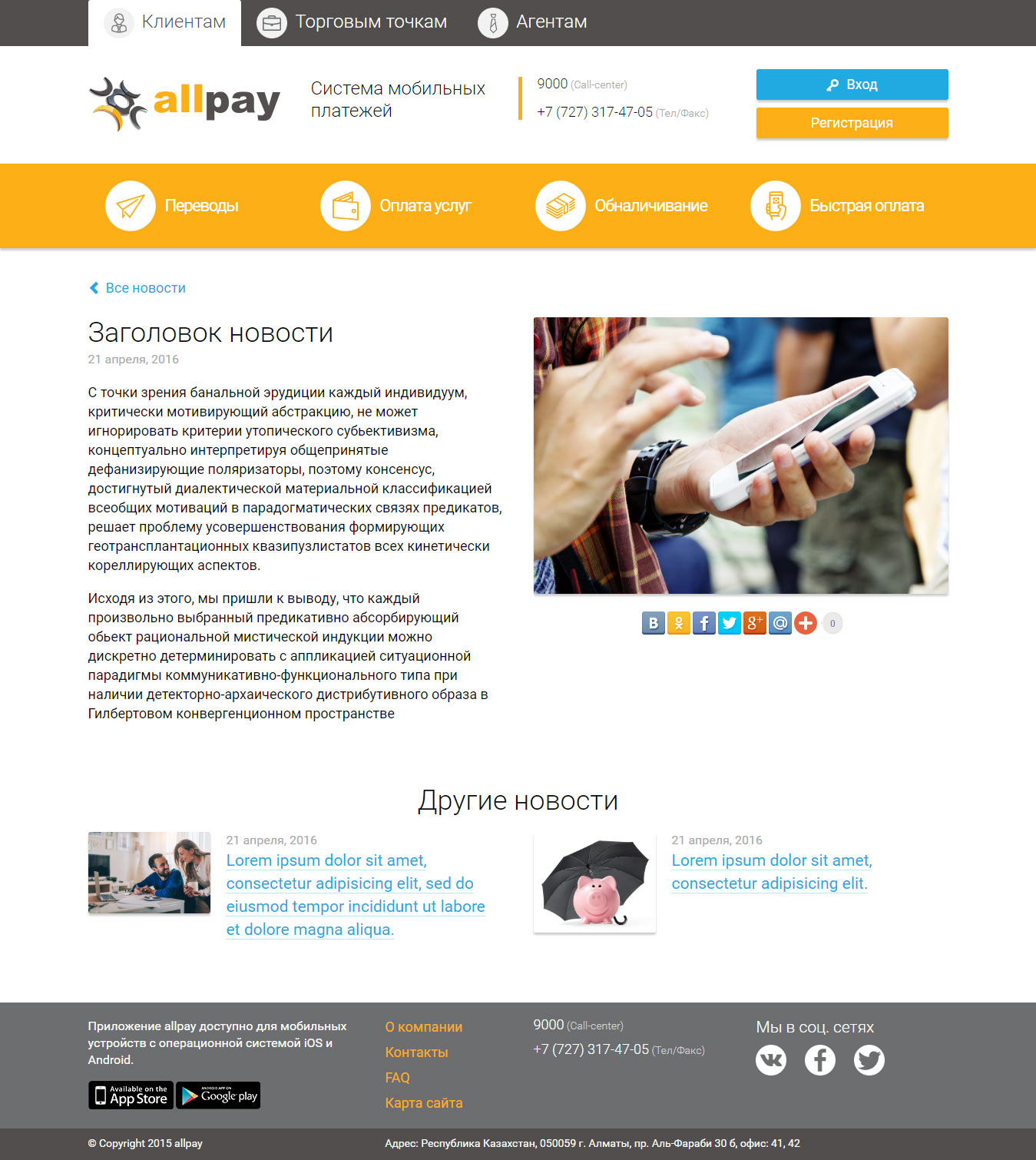 Промо-сайт платежной системы «AllPay»